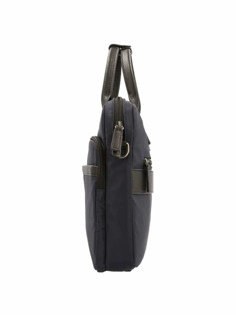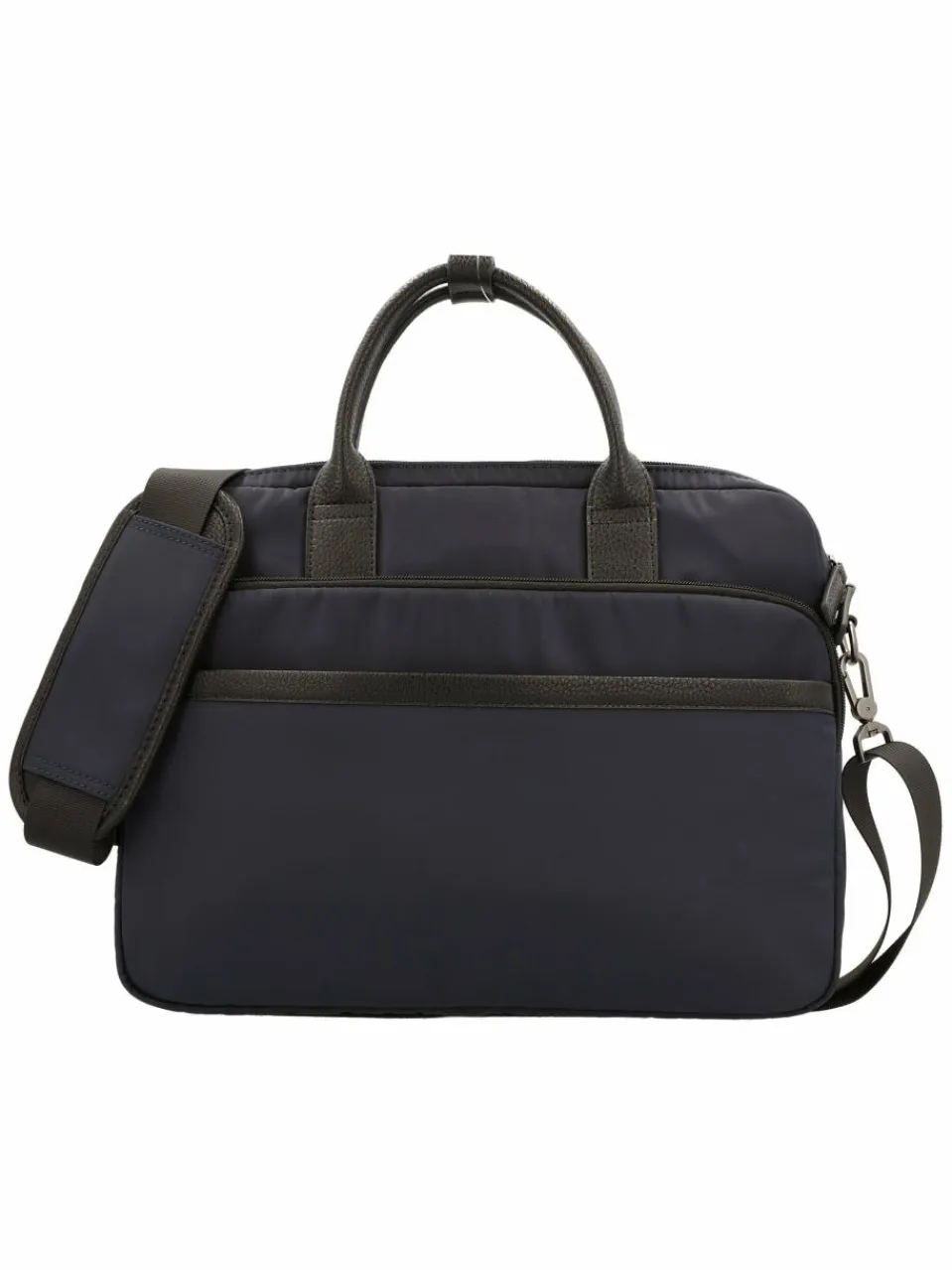 Praktische Funktionalität und edles Design verschmelzen in dieser Laptoptasche aus glattem, strapazierfähigem Nylon. Mit einem Reißverschluss kann das Hauptfach der Tasche sicher geschlossen werden, während zusätzlicher Stauraum durch die beiden extra Fächer vorne und hinten geboten wird. Das gepolsterte Laptopfach zusammen mit der praktischen Trolleyaufsatzschlaufe ermöglicht ein sicheres und bequemes Reisen. Kombiniert mit Stoffhose und Shirt oder Jeans und T-Shirt gibt diese Tasche jedem Office-Outfit einen lässigen Touch. Erfolgreich und stilvoll!