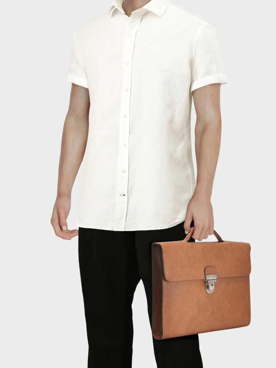 Geradliniges Design bestimmt die Form dieser Aktentasche aus naturbelassenem Rindsleder. Ihre klare Form wird mit bester Qualität in Verarbeitung und hochwertigem Leder kombiniert. Ein großer Innenbereich bietet genügend Raum für all Ihre Dokumente und in verschiedenen Steckfächern finden Ihre persönliche Dinge ihren Platz.