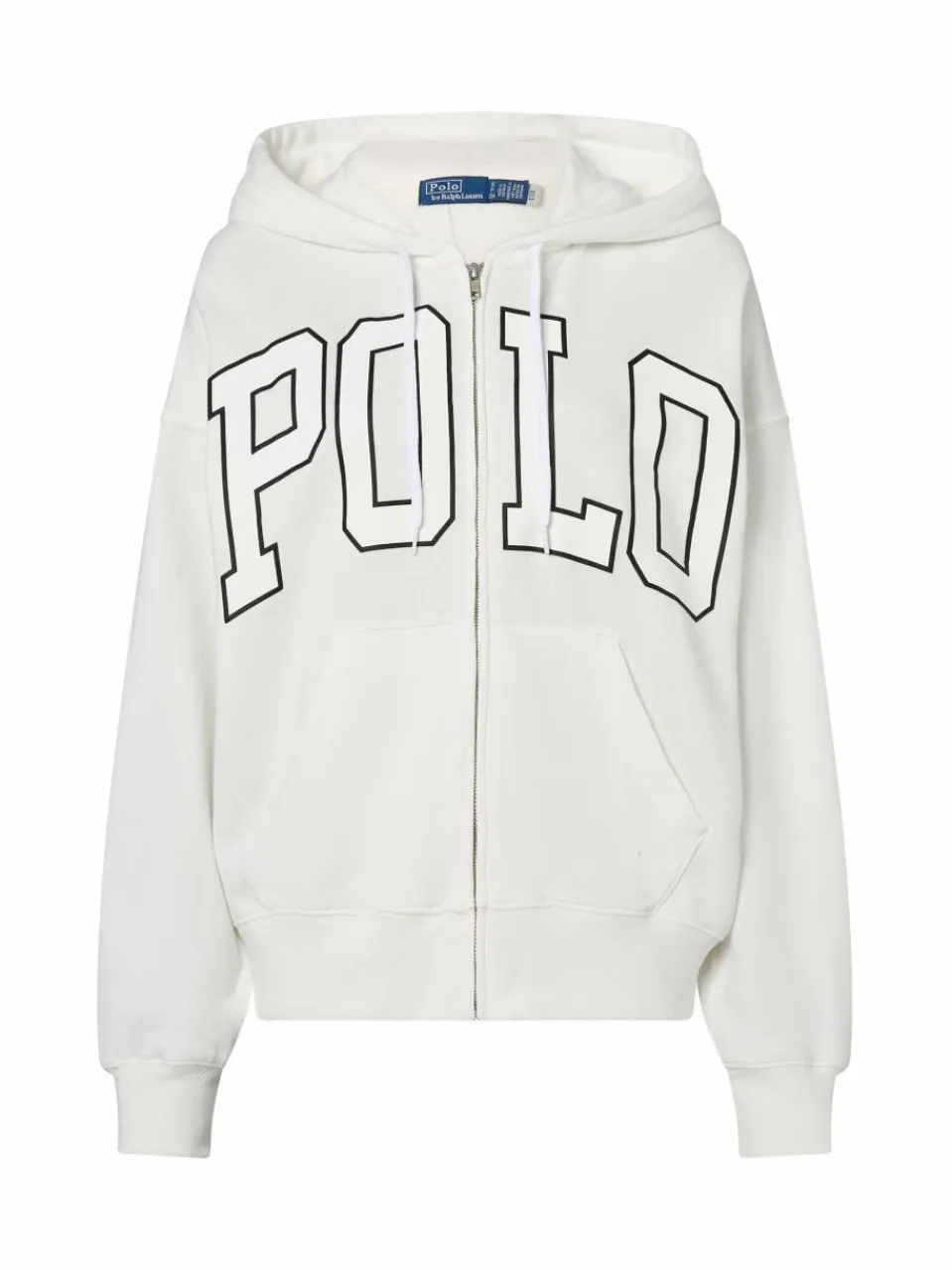 Die oversized Sweatjacke von Polo Ralph Lauren mit plakativem Frontprint, Zipper und Kängurutasche ist eine lässige Ergänzung für das Athleisure-Styling.