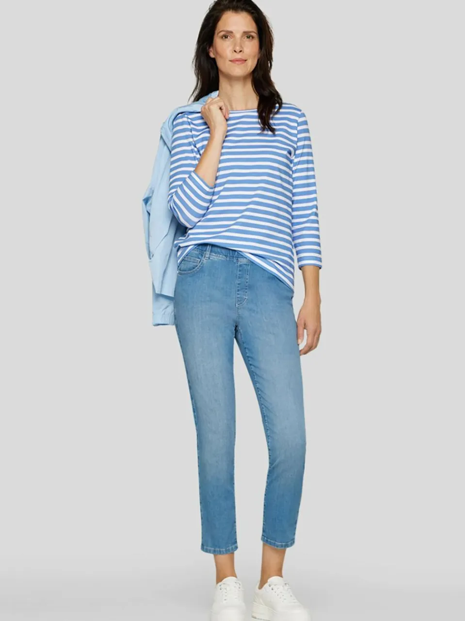 Dieses gestreifte Shirt ist die perfekte Kombination aus klassischem Design und zeitgemäßem Komfort, ideal für Freizeit und Alltag.Klassisches Streifenmuster – Frische Blau-Weiß-Kombination für einen frischen Look.Bequemer Schnitt – Figurbetont und angenehm zu tragen, ohne einzuengen.3/4-Ärmel – Praktisch und vielseitig für jede Jahreszeit.Vielseitig kombinierbar – Perfekt zu Jeans, Stoffhosen oder Röcken.Dieses Shirt ist ein echter Allrounder und verleiht jedem Outfit eine frische und stilvolle Note.