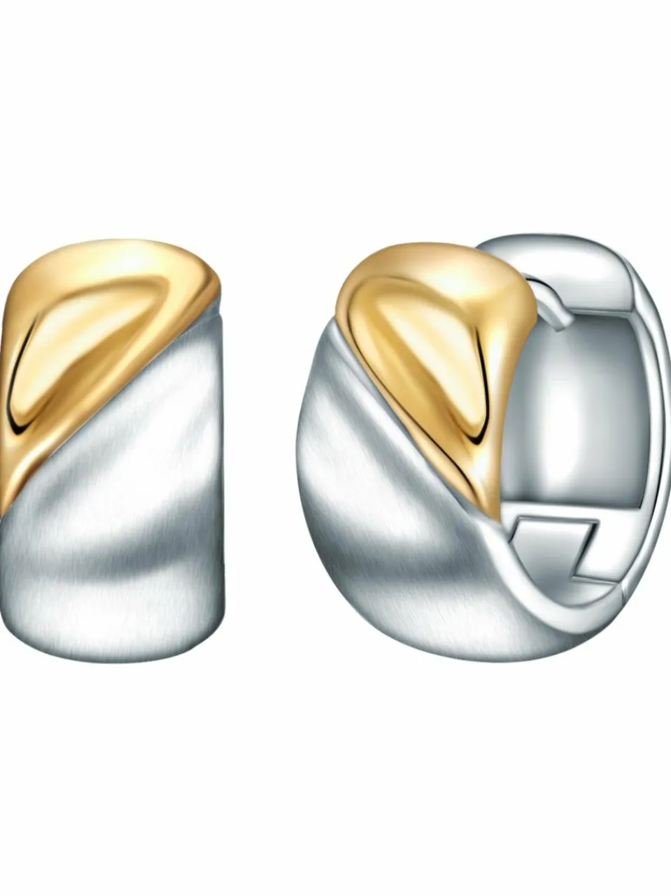 Du liebst den kühlen Glanz von Silber ebenso wie den warmen Schimmer von Gelbgold? Dann sind diese Bicolor-Ohrringe des Labels Rafaela Donata dein neues Every-Day-Piece. Die zeitlosen, organisch geformten Creolen vereinen die beiden beliebten Edelmetall-Nuancen und nutzen spannenden Kontrast, um alle Blicke auf deine Ohrläppchen zu lenken. Der Ohrschmuck ist aus 925er Sterling Silber gefertigt und teils mit hochglanzpoliertem Gelbgold, teils mit mattiertem Rhodium veredelt.