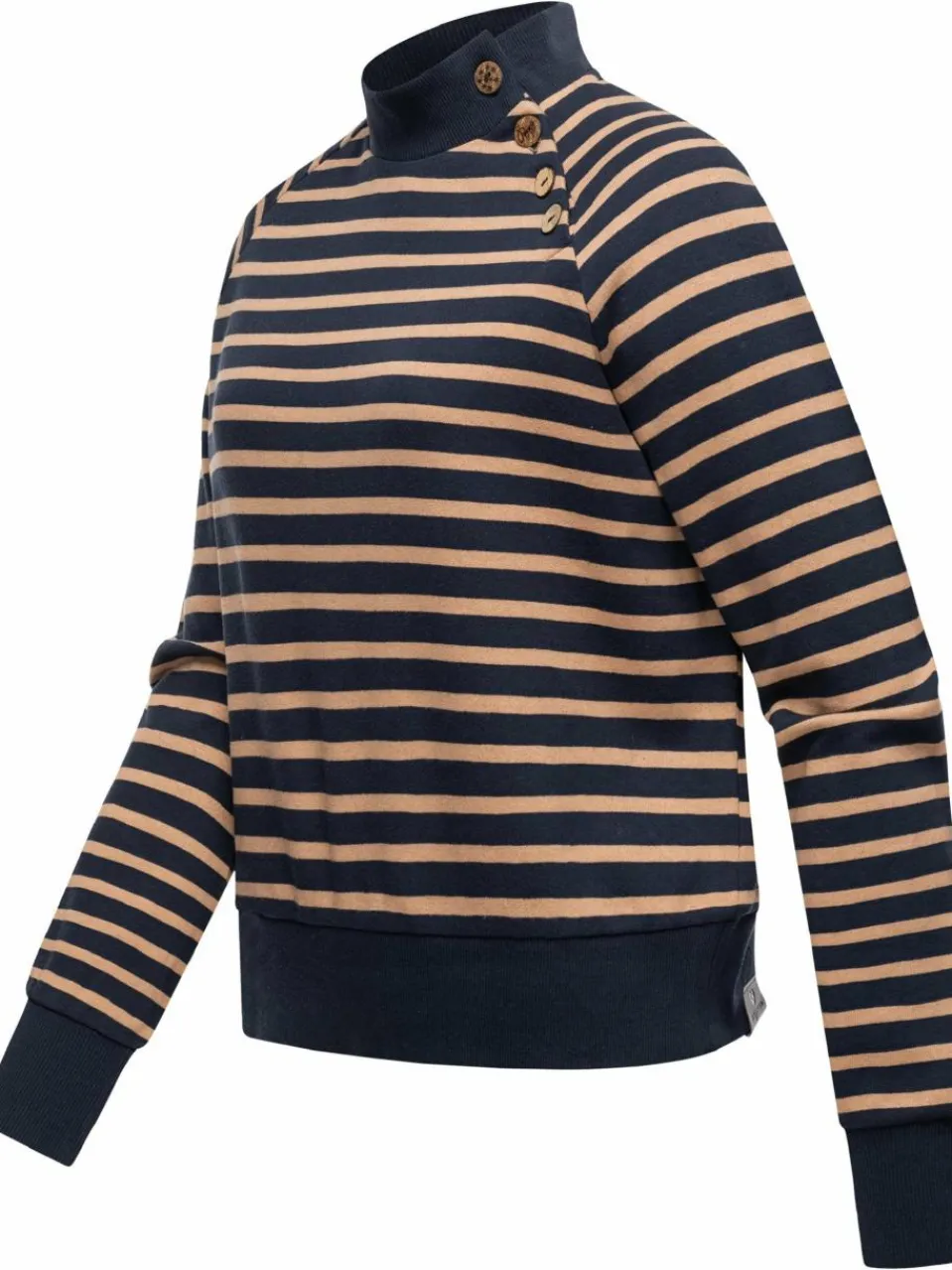 Langärmliger und super weicher Sweatpullover in angesagtem Streifenmuster mit warmen Rippbünchen und Knöpfen von Ragwear.