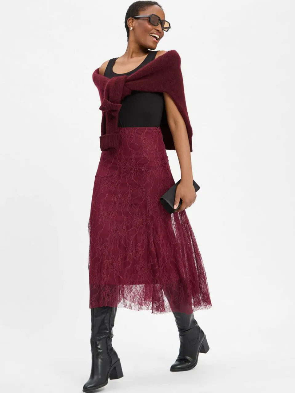 Aus Spitze zeigt sich der Rich & Royal Midirock als feminines Stylingpiece zu Blusen, Tops oder schlichten Bodys.