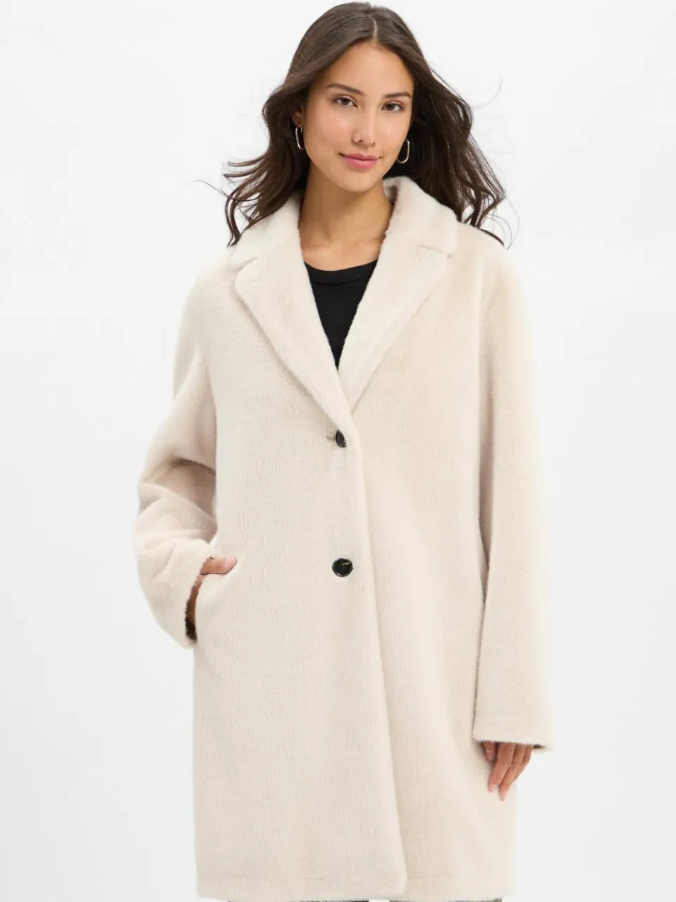 Die Jacke von Rofa aus kuscheligem Fake Fur ist ein modischer Allrounder, der sich sowohl lässig als auch elegant stylen lässt.