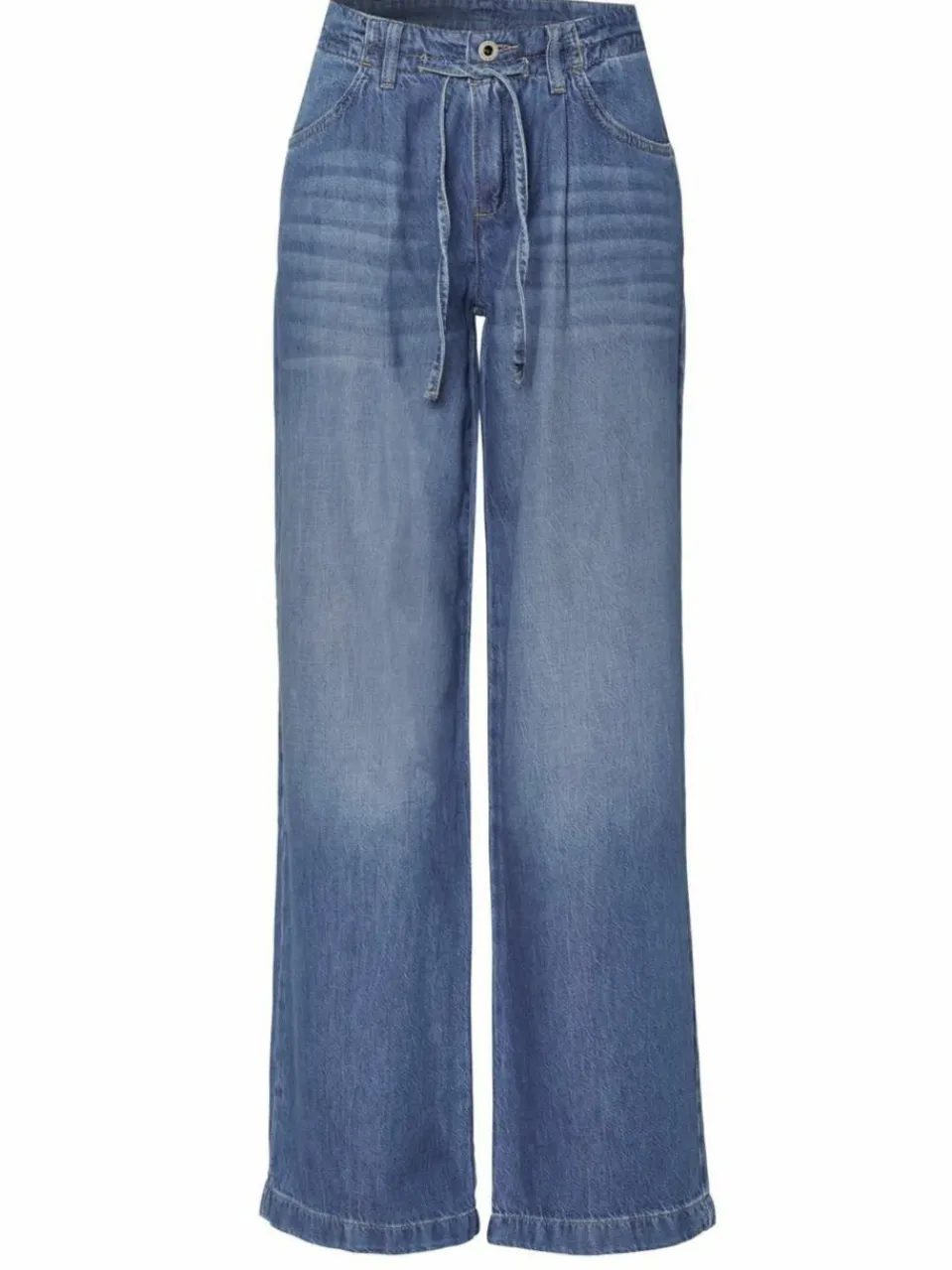 Die Jeans in normaler Länge zeichnet sich durch eine mittlere Leibhöhe sowie einem Bund mit Bindegürtel aus. Die entspannte Oberschenkelweite und der weite Beinverlauf garantieren eine perfekte Passform. Sie hat Stecktaschen vorne und aufgesetzte Taschen hinten. Leichter Denim mit Tencel ohne Stretch. Unser Model Anna ist 180 cm groß und trägt Größe 36