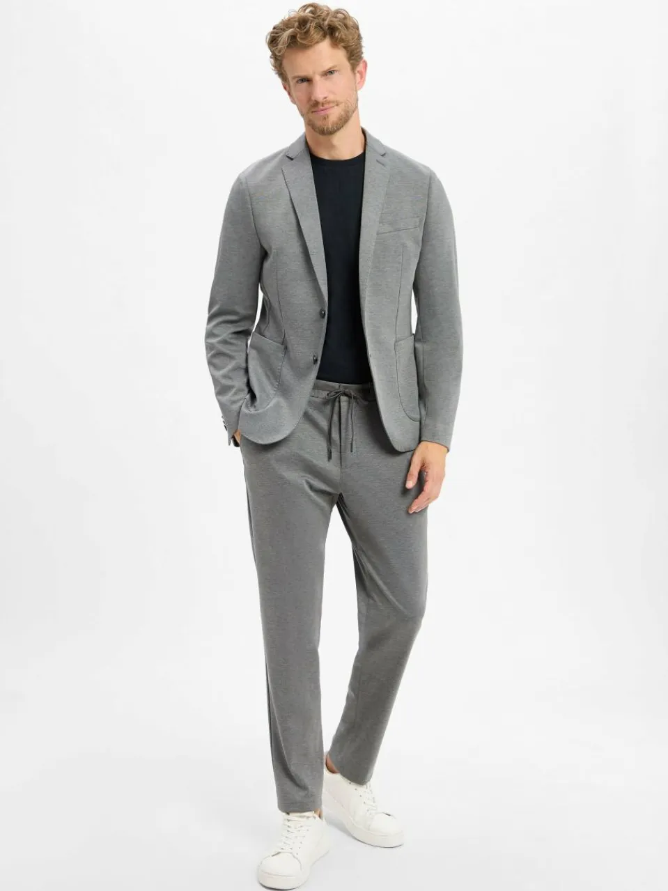 Zwischen casual und smart: Die Jog Pants von s.Oliver Black Label verbinden den Tragekomfort einer Sweatpants mit dem Appeal einer Businesshose. Die Hose ist Teil eines Baukasten-Anzugs, kann aber auch allein getragen werden.