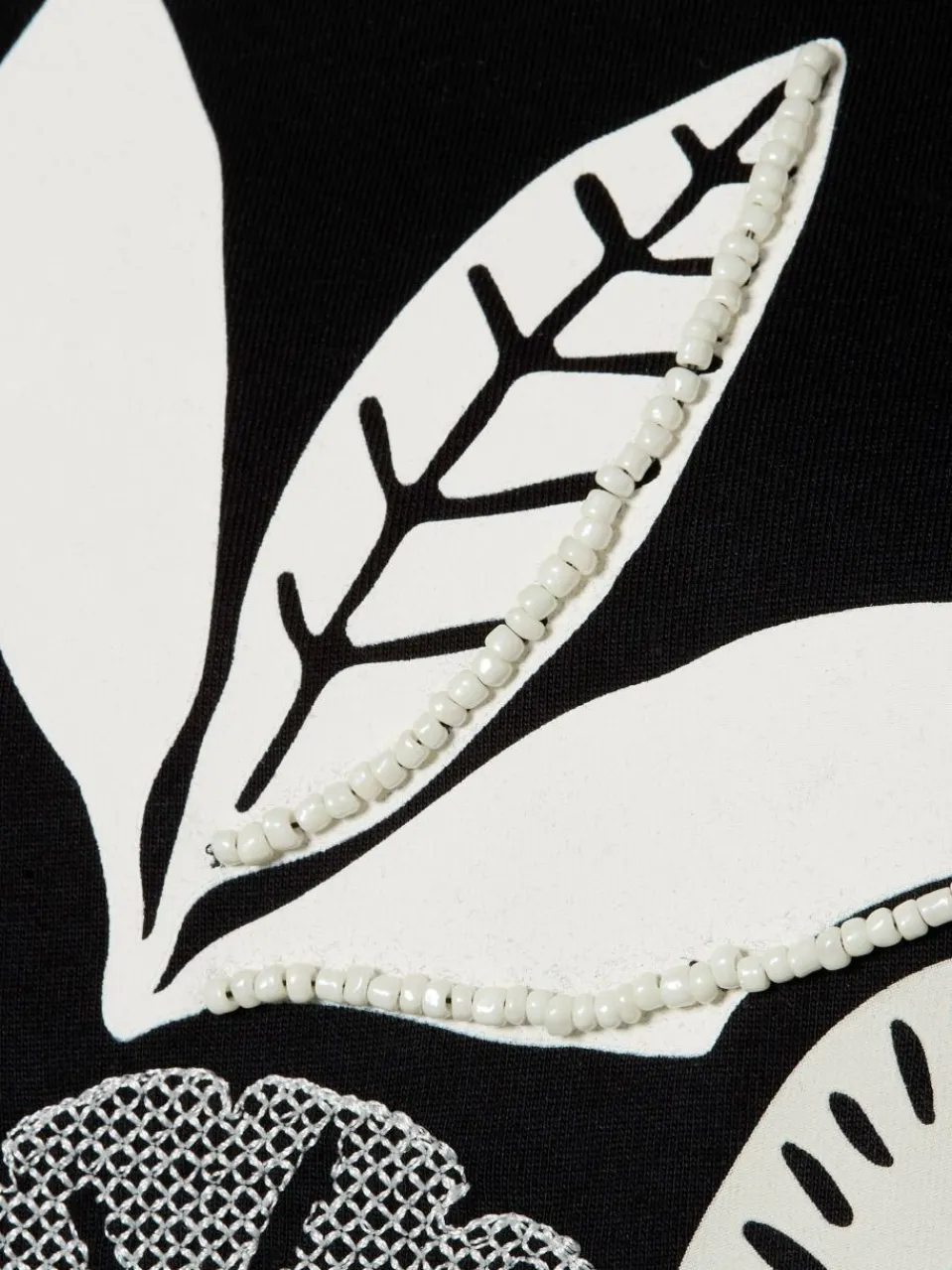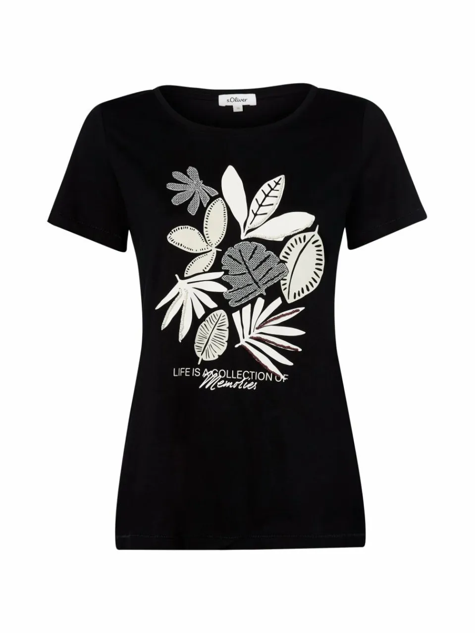 Das T-Shirt von s.Oliver aus Baumwoll-Jersey mit botanischem Print-, Stickerei- und Zierperlen-Design vereint verspielte Details mit natürlichem Charme.