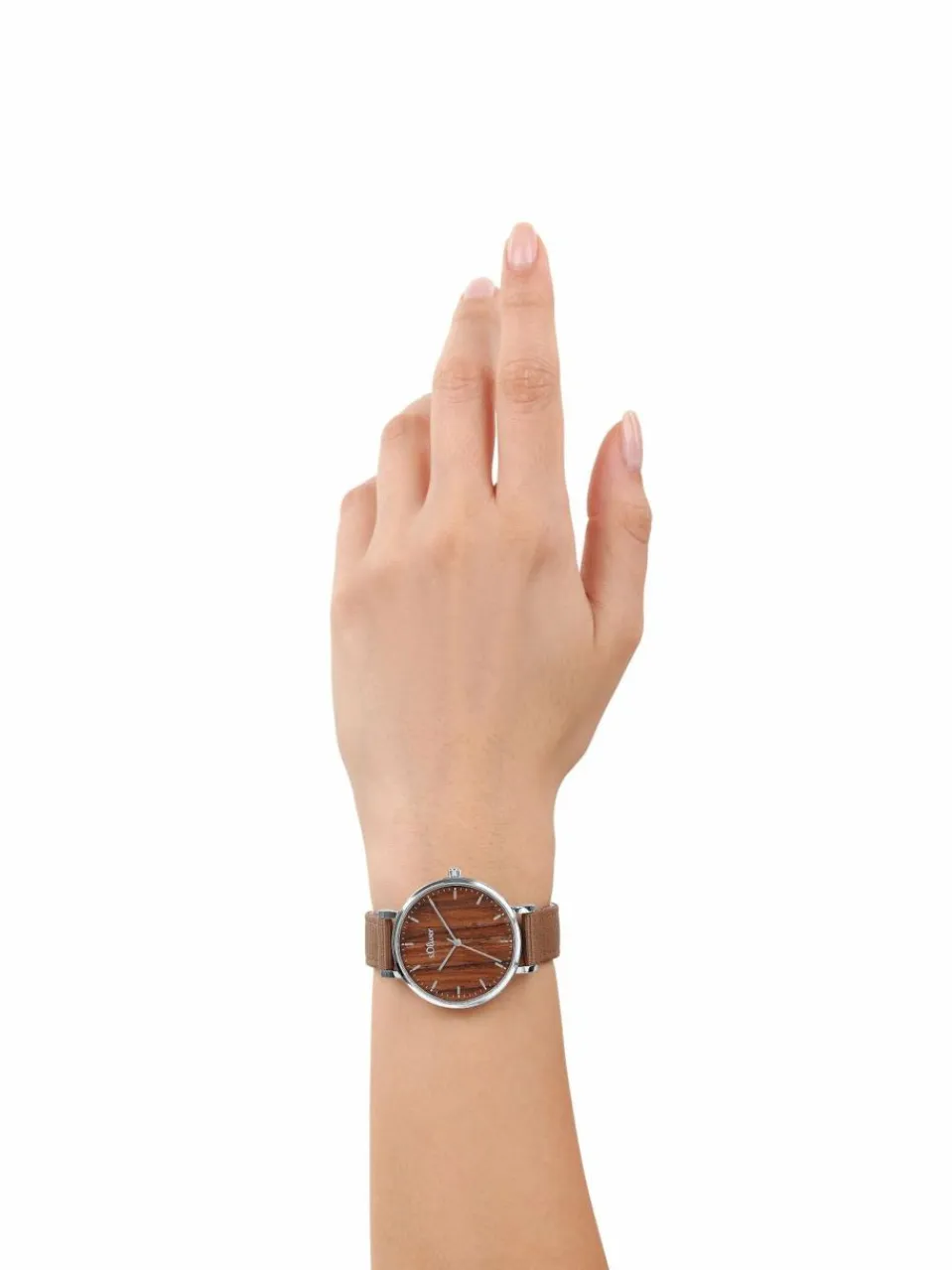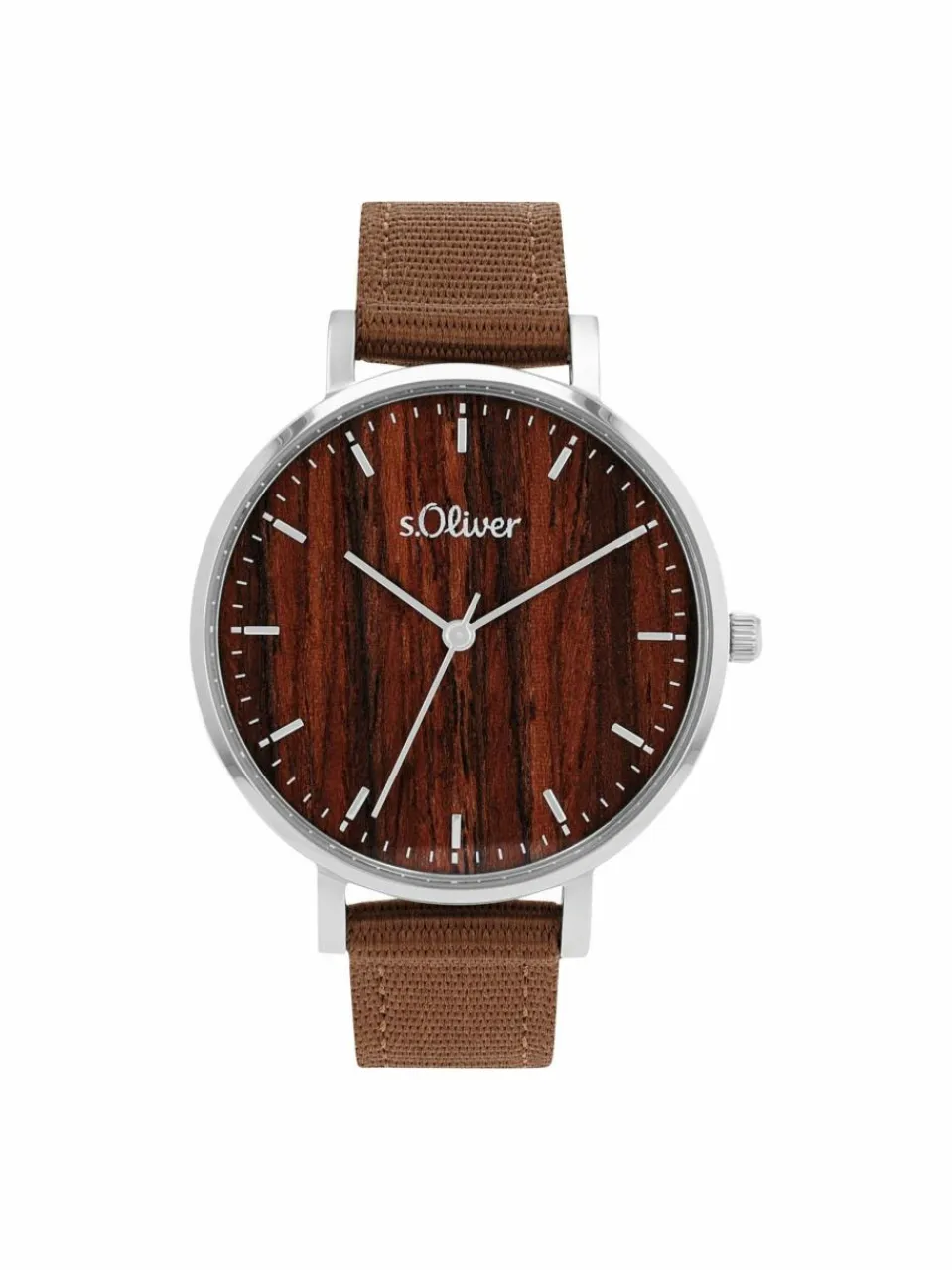 - Diese außergewöhnliche Damenuhr von s.Oliver präsentiert sich mit pflegeleichtem Nylon-Armband und einem strukturiertem Ziffernblatt, das in Holz-Optik daher kommt