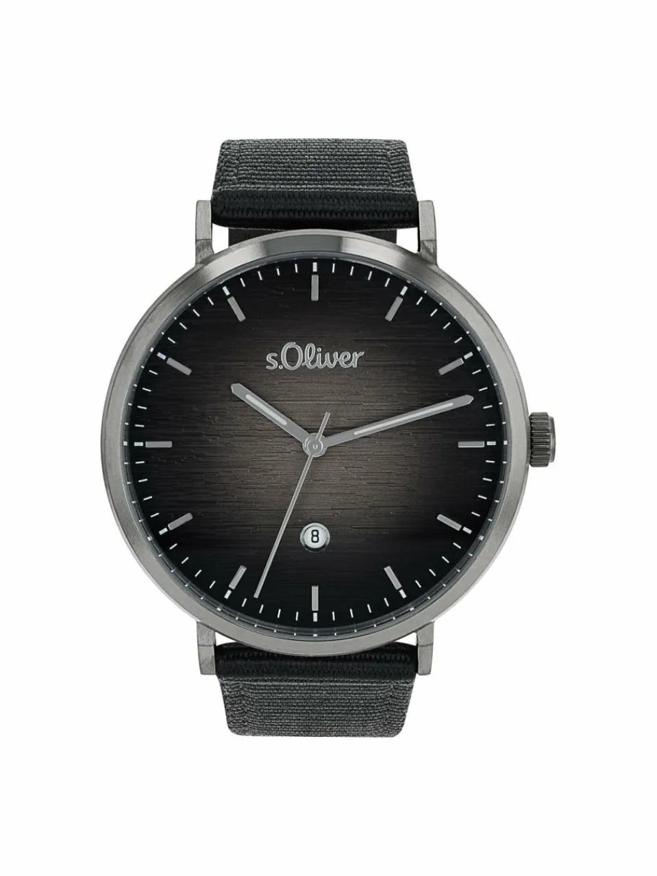 - Diese außergewöhnliche Herrenuhr von s.Oliver präsentiert sich mit pflegeleichtem Nylon-Armband. Das Ziffernblatt der Armbanduhr Herren ist nicht nur strukturiert sondern auch mit Farbverlauf