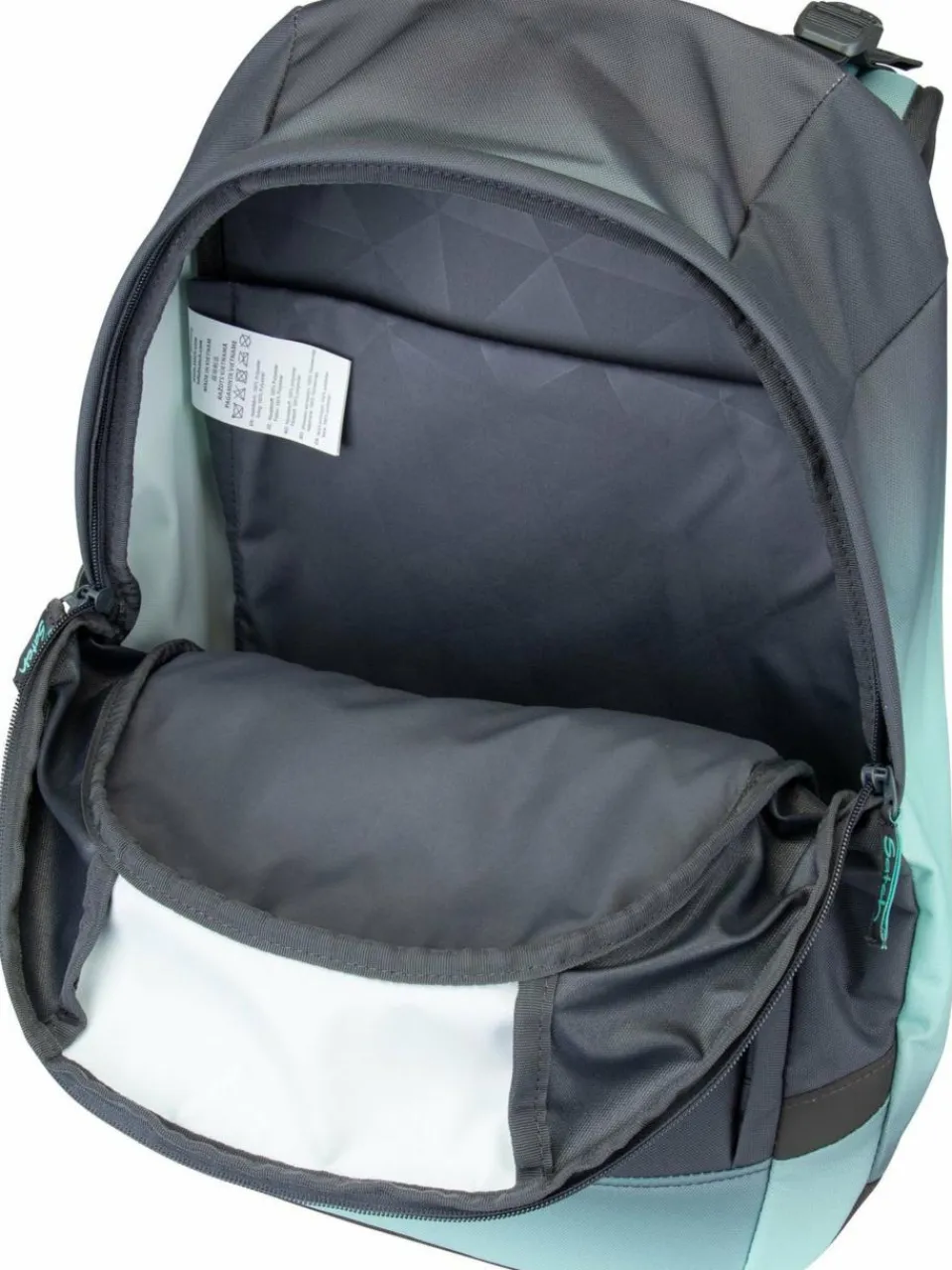 Extra leichter Schulrucksack von satch aus wasserabweisendem, recyceltem Polyester, der ein Laptopfach und praktischen Organizer für optimalen Komfort und Ordnung bietet.
