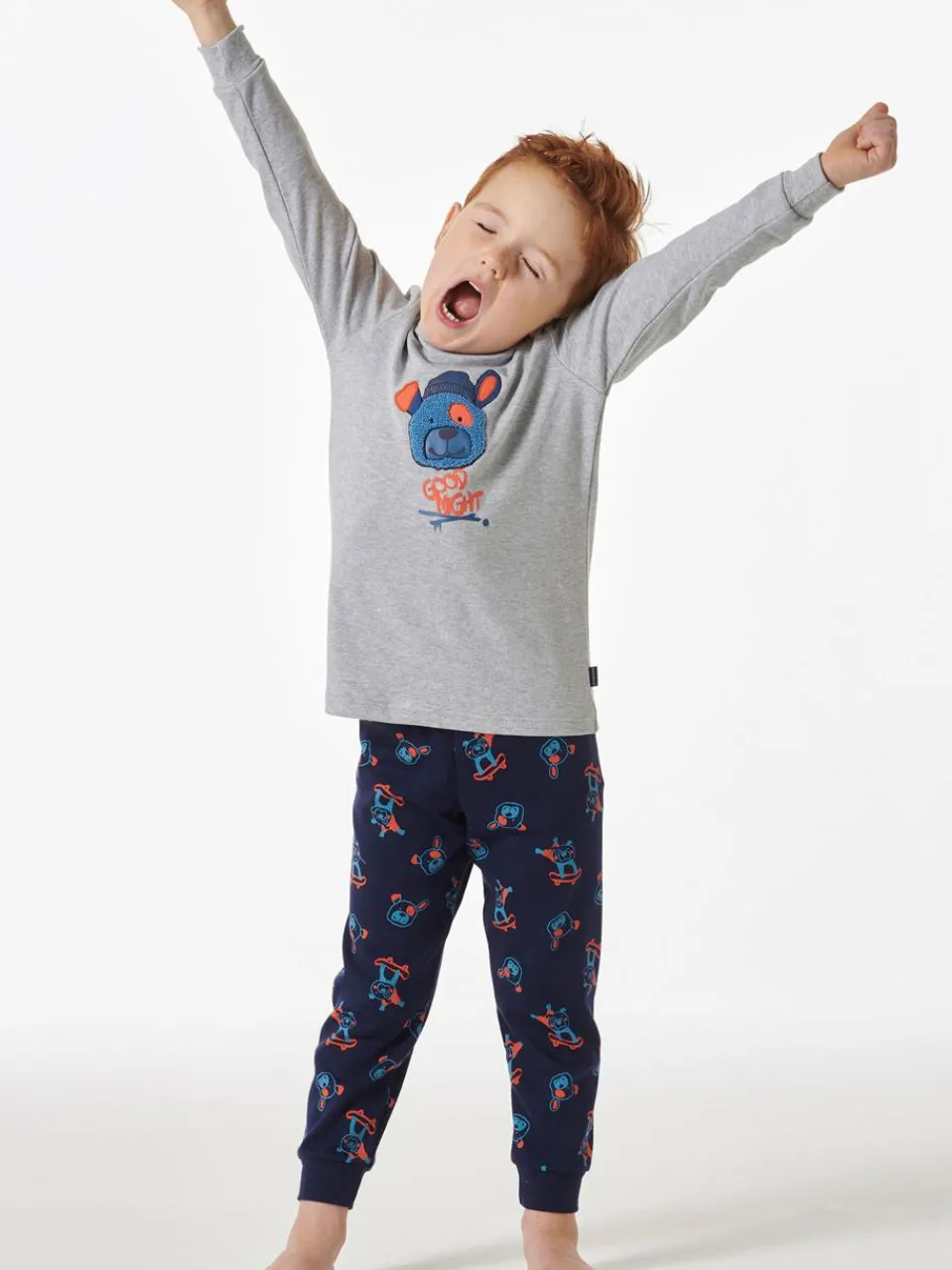 Schiesser Jungen<Jungen Pyjama – Boys World grau bedruckt