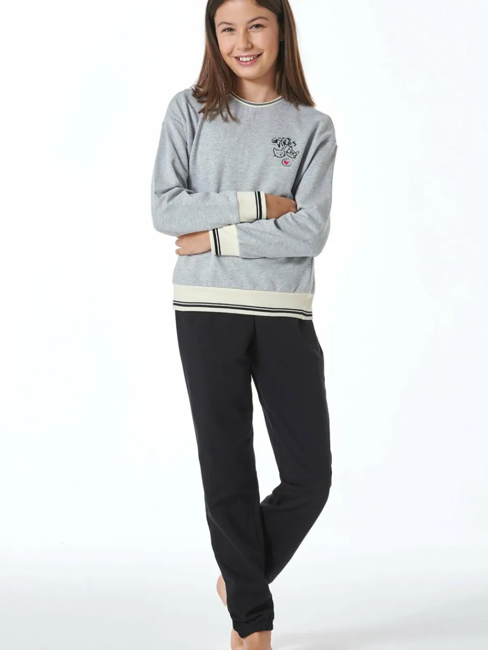 Schiesser Mädchen<Mädchen Pyjama – Nightwear grau bedruckt