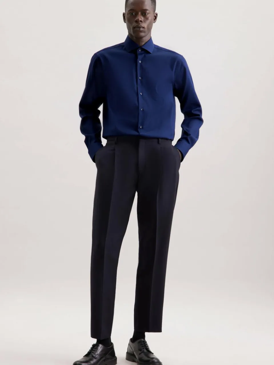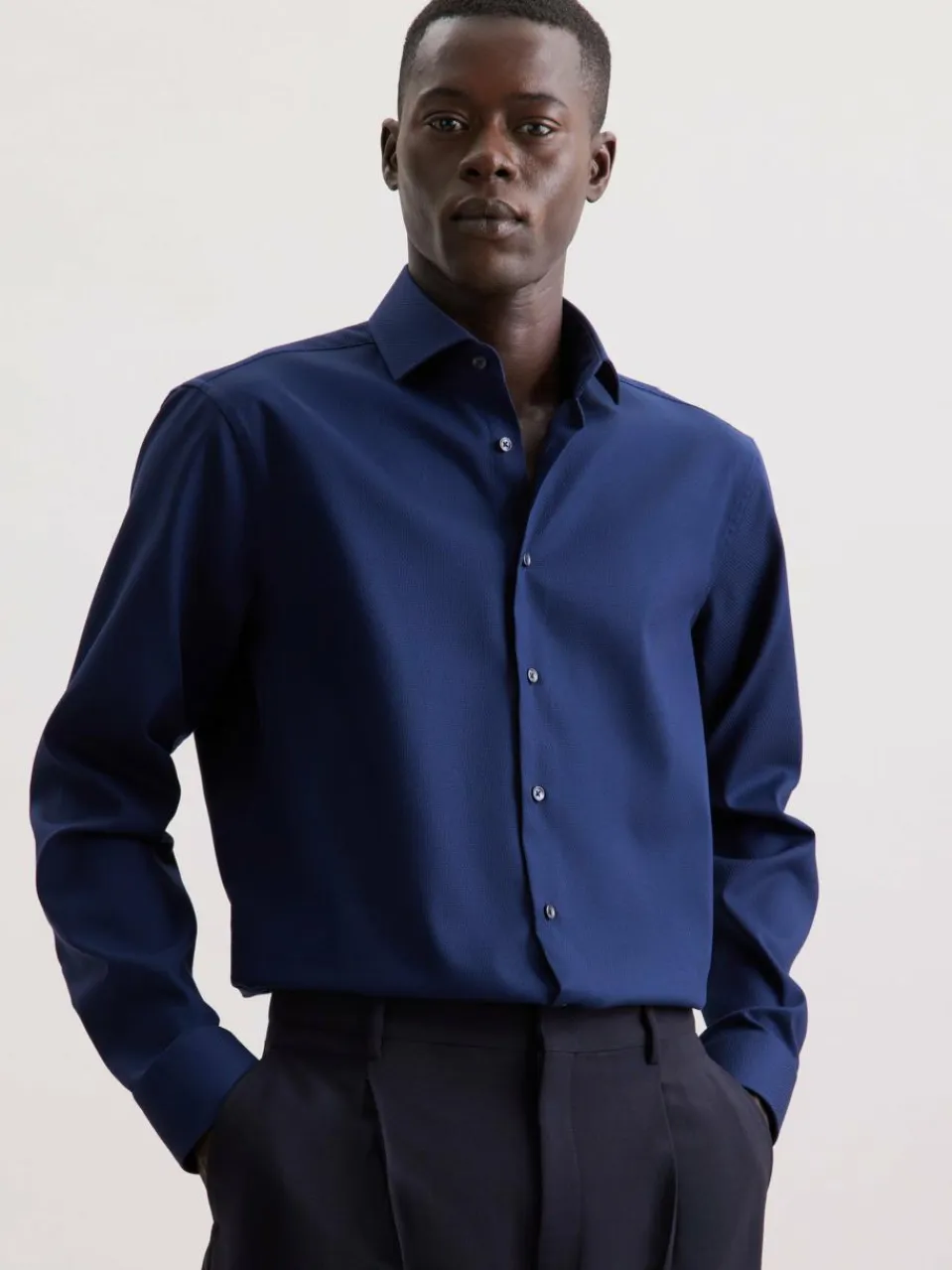 Seidensticker Hemden<Herren Business Hemd – Regular 1/1 blau strukturiert