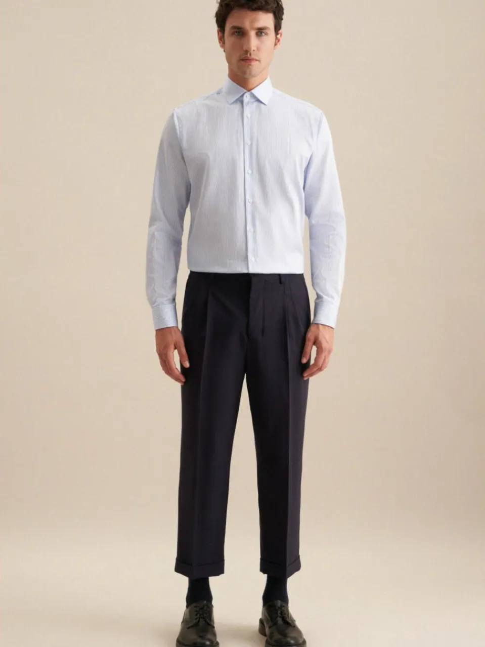 Artikelnummer: SKUzmQcDQhChI Kategorien: Bekleidung, Hemden, Herren Schlagwörter: Hellblau Gestreift, Herren, Seidensticker Marke: Seidensticker