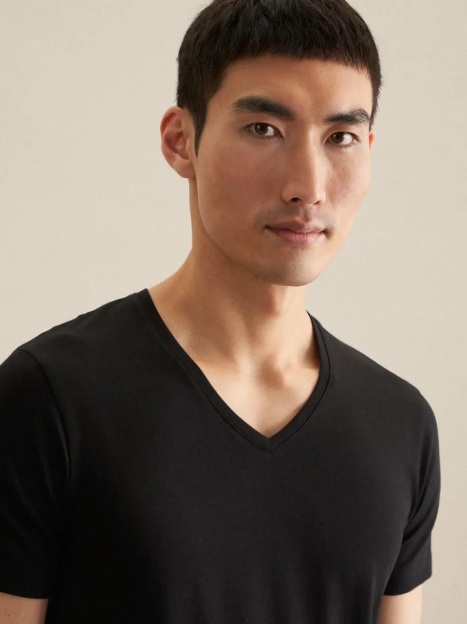 Seidensticker Shirts<Herren T-Shirt – Uni schwarz uni