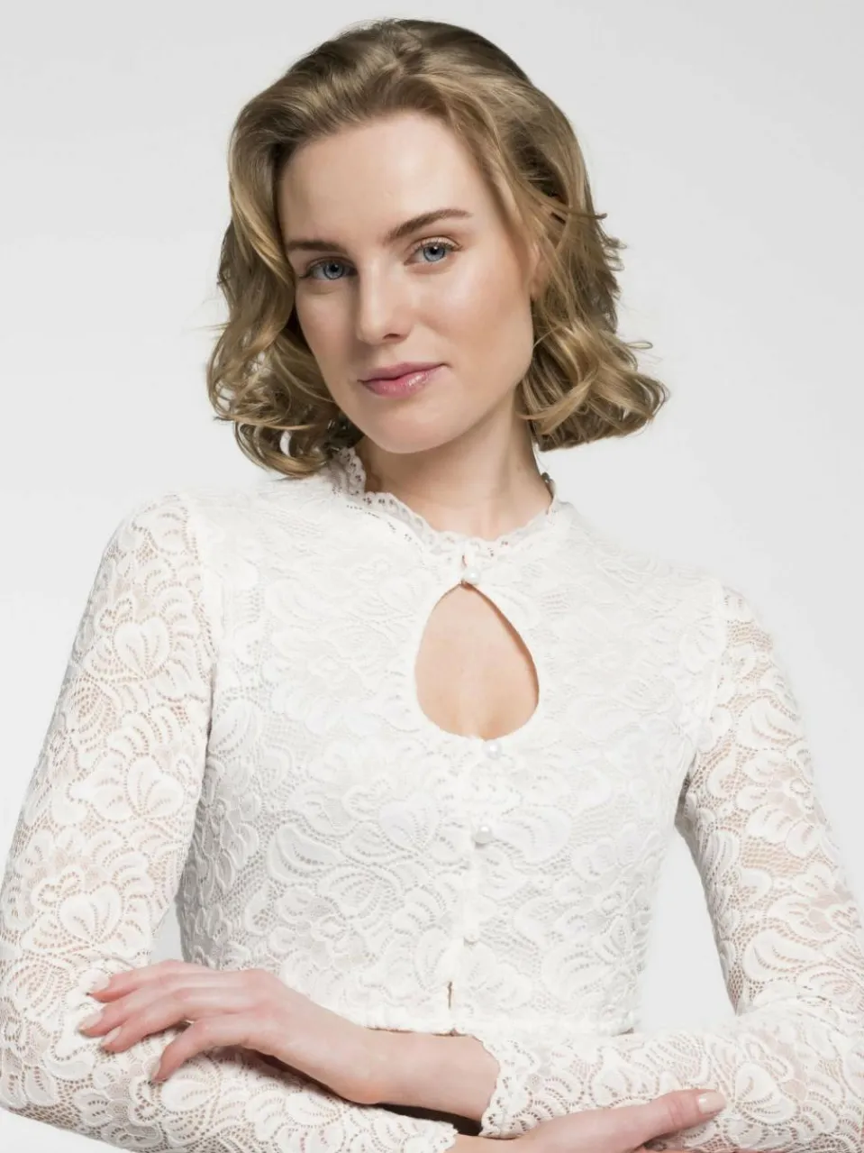 Mit dieser eleganten Dirndlbluse von Spieth & Wensky wird Ihr Trachtenlook perfekt! Sie überzeugt nicht nur mit ihrer figurbetonten Passform auf ganzer Linie, sondern wirkt dank Wellensäumen an den langen Ärmeln und einem verführerischen Tropfenausschnitt zusätzlich wunderbar feminin. Dank des hochwertigen Materialmix bleiben zudem auch in puncto Komfort keine Wünsche offen.