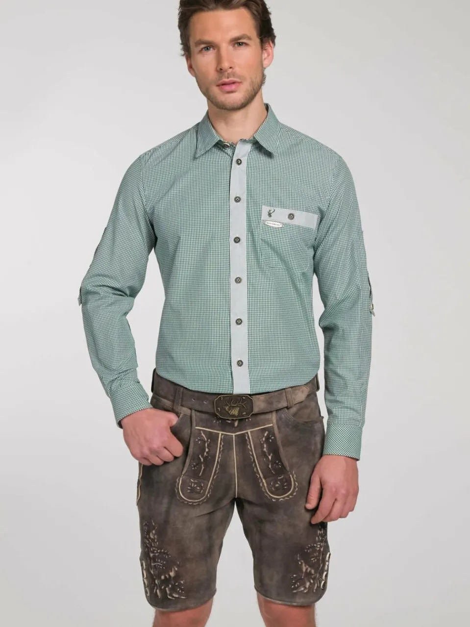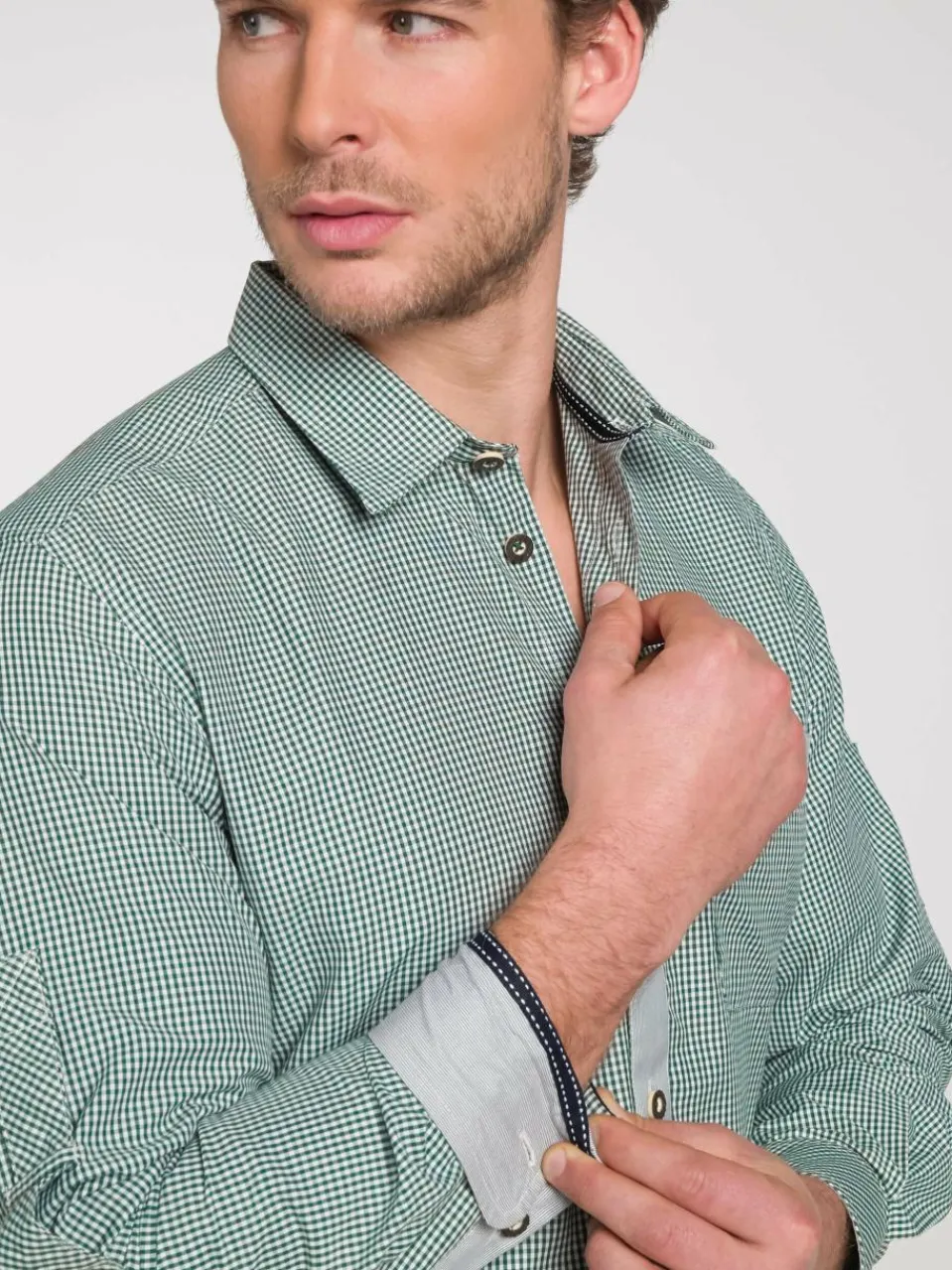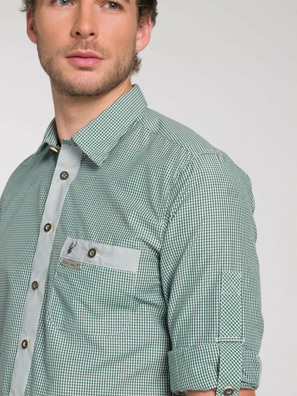 Dieses Slim Fit Hemd in topaktuellem Kleinkaro mit Kontrastblende und Krempelarm überzeugt durch modische Schnittführung, optische Schlichtheit und perfekten Ausputz. Es lässt sich gut zur Lederhose, Weste oder Strickjacke kombinieren. Da wird ER gut aussehen! Modelnummer: 261810-0948