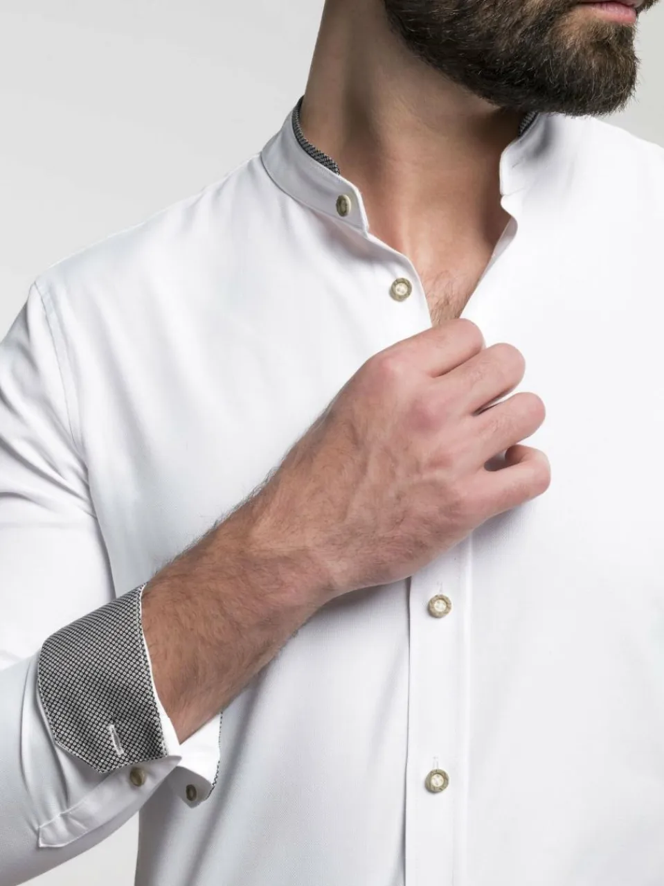 Dieses moderne Trachtenhemd von Spieth & Wensky macht jedes Trachtenoutfit perfekt. Unifarben, mit Stehkragen und Manschettenärmeln wirkt es zeitlos-elegant und lässt sich mit allem kombinieren. Gleichzeitig bringen Kontrastelemente moderne Akzente ins Design. Durch den geraden Schnitt und das hochwertige Mischgewebe bietet es zudem besten Tragekomfort und bringt sie bequem durch jede Festlichkeit.