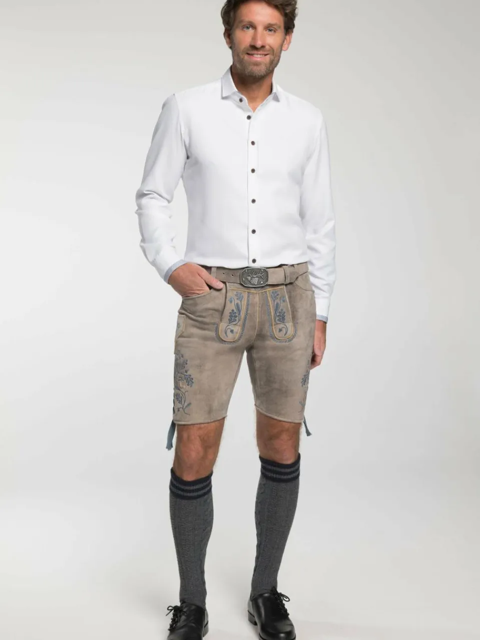 Die Lederhose ‚Garvin‘ von Spieth & Wensky zeigt sich im ehrwürdigen Trachtenlook. Die 45 cm langen Beine sind mit zahlreichen Stickereien und Verzierungen ausgestattet und sorgen für einen unmissverständlichen und selbstbewussten Auftritt. Die detailgenaue Hirschemblem-Gürtelschnalle ist dennoch das optische Highlight dieser Hose, welche ein Must-Have für jede Trachtengarderobe ist.