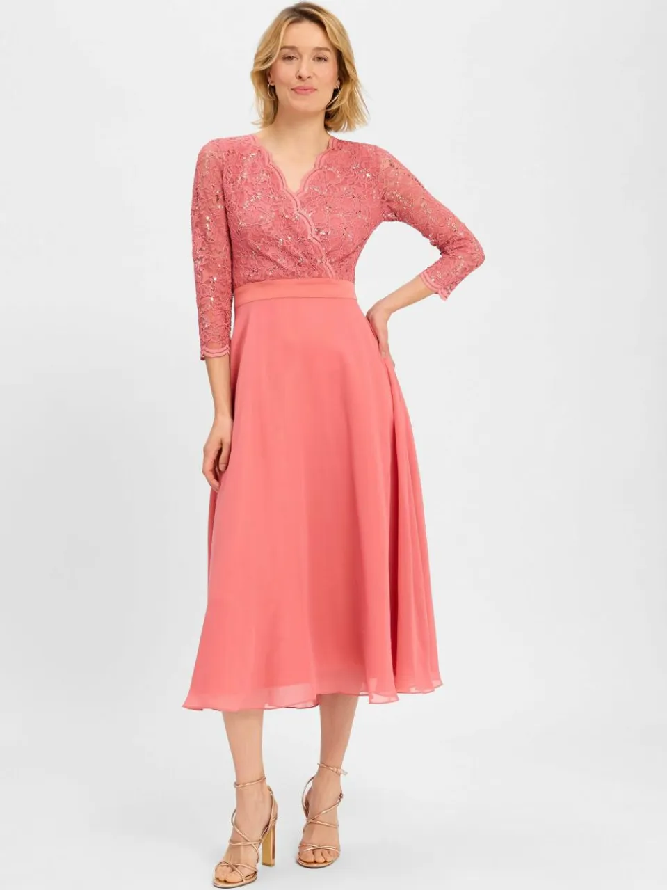 Das Swing Abendkleid kombiniert ein elegantes Oberteil mit Spitze und Pailetten mit einem schwingenden Rockteil für einen glamourösen Auftritt.