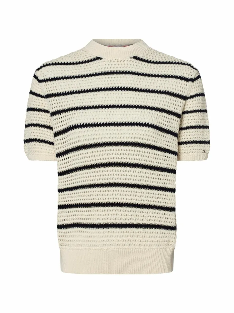 Ein Allrounder für zahlreiche Sommer-Looks: der Kurzarm-Pullover von Tommy Hilfiger im zarten Lochstrick mit elastischen Rippbündchen.