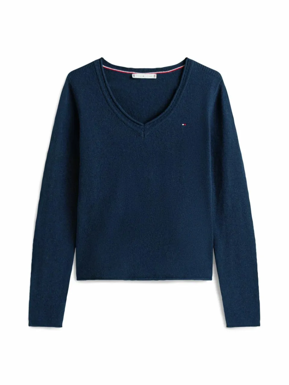 Der tiefe V-Ausschnitt und die leichte Woll-Qualität zeichnen den Strickpullover von Tommy Hilfiger als stylisches Layering-Item aus.