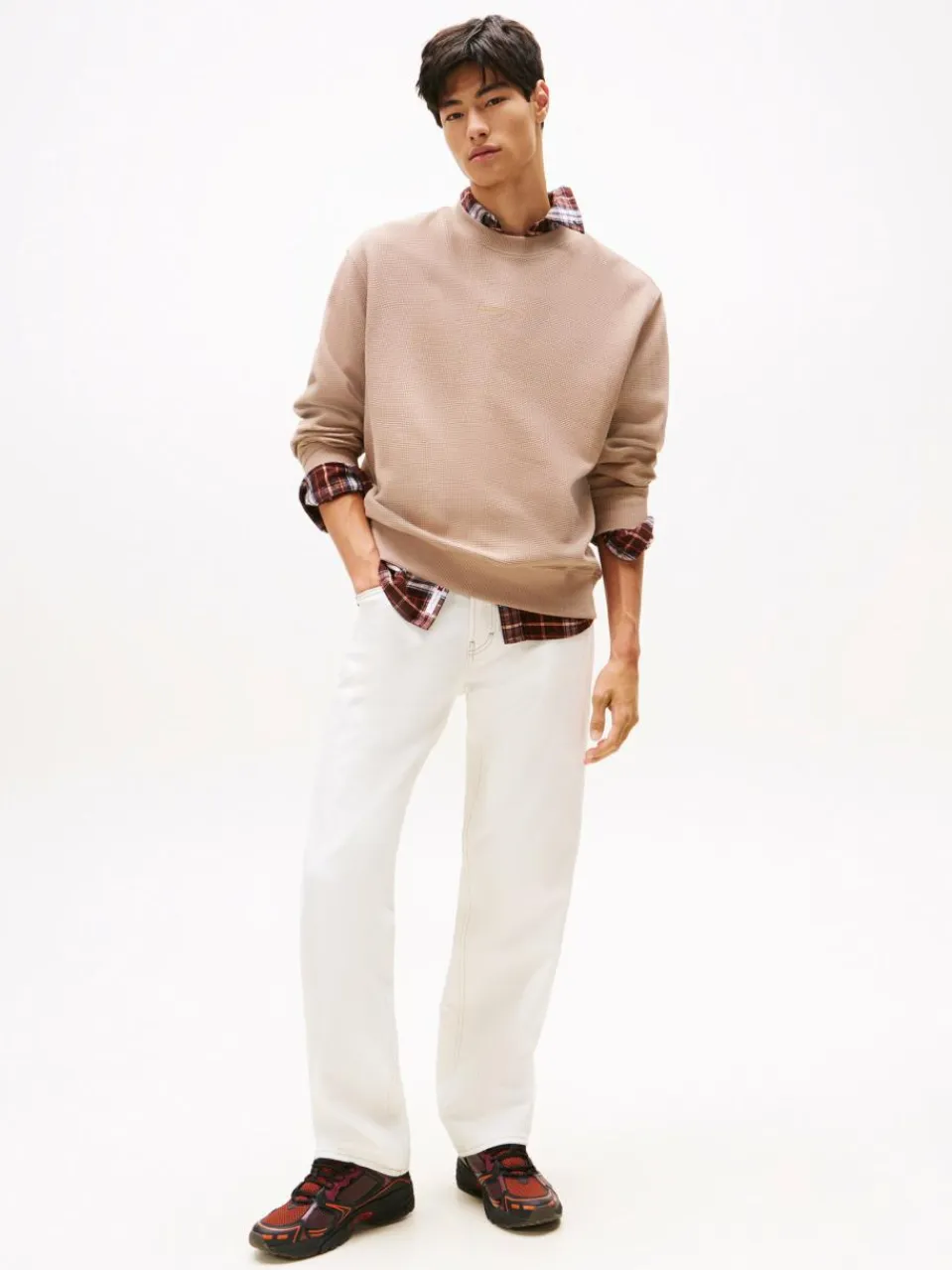 Die reine Baumwolle mit Waffelstruktur und dezente Stickereien zeichnen das Tommy Jeans Sweatshirt als modernes Piece für relaxte Outfits aus.