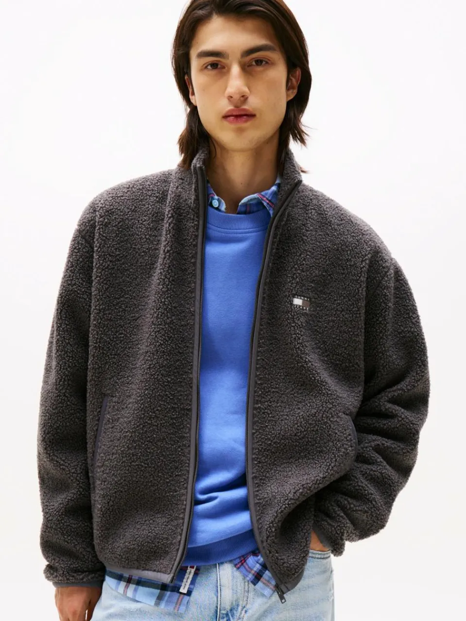 Ein wahres Wohlfühl-Piece: die lässig geschnittene Tommy Jeans Teddyjacke mit Stehkragen und wärmendem Fleecefutter.