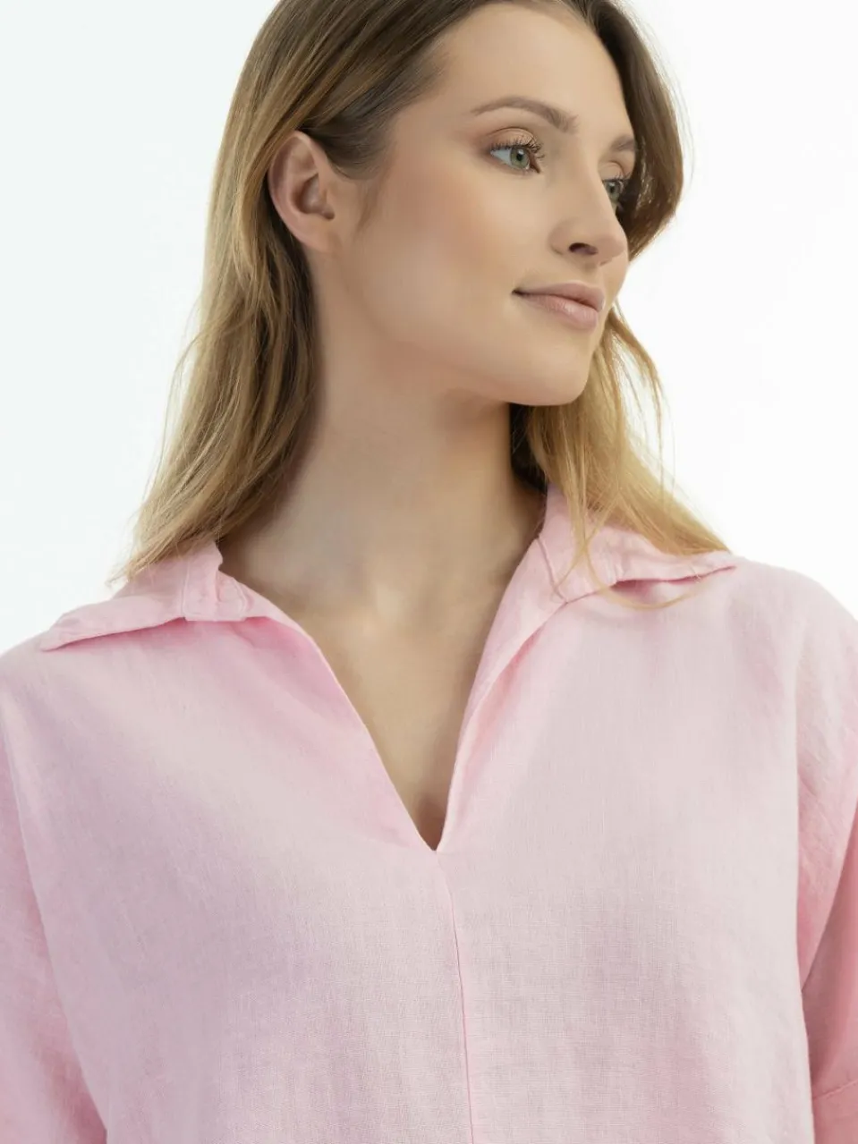 Mit der leichten Leinen-Viskosequalität und der legeren oversized Passform sorgt das in Italien gefertigte Blusenshirt von usha für einen optimalen Tragekomfort. Der feminine V-Ausschnitt mit Kragen setzt das Dekolleté in Szene, während die weiten Ärmel und die lockere Silhouette viel Leichtigkeit in das Modell bringen. Abgerundet wird das zeitlose Design durch kleine Schlitze an den Seiten.
