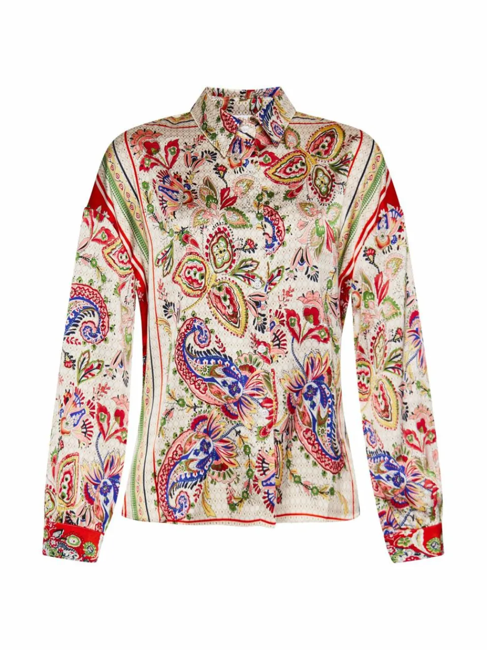 Elevate your style with this printed satin shirt with long sleeves, designed for a chic festival look. This buttoned-up shirt showcases intricate patterns that exude elegance. The tailored fit and buttoned cuffs provide a polished finish, making it versatile for both tucked or untucked wear.