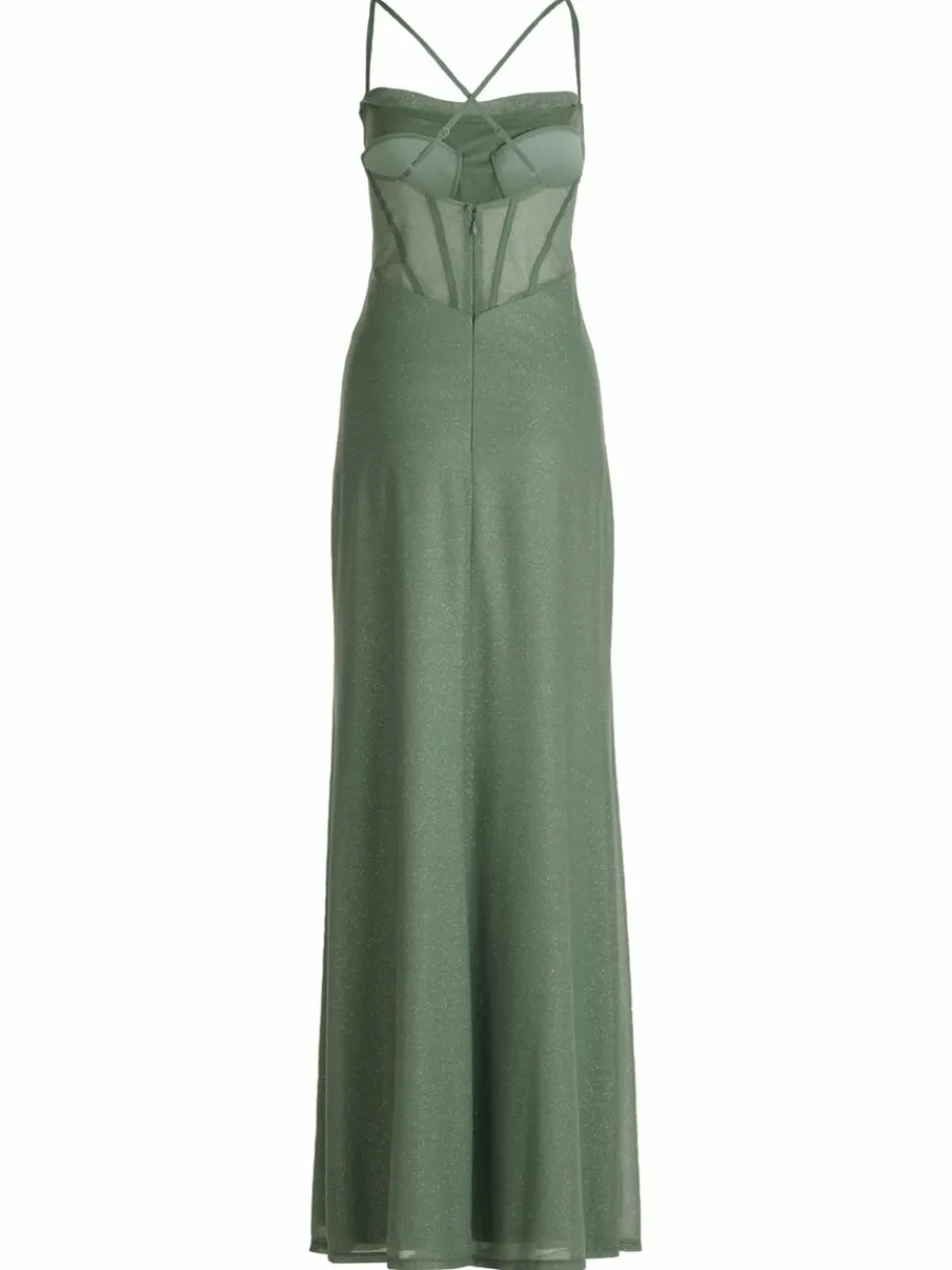 Dieses Abendkleid setzt elegante Akzente mit glitzernden Mesheinsätzen und raffinierten Cut-Outs. Der figurbetonte Schnitt und der sinnliche Wasserfallausschnitt unterstreichen die feminine Silhouette, während das rückfreie Design eine atemberaubende Rückenansicht bietet. Aus hochwertigem Polyester-Netz gefertigt, wirkt das Kleid edel und modern. Die verstellbaren Spaghetti-Träger und der Reißverschluss sorgen für optimalen Sitz. Ein glamouröses Highlight für besondere Anlässe!