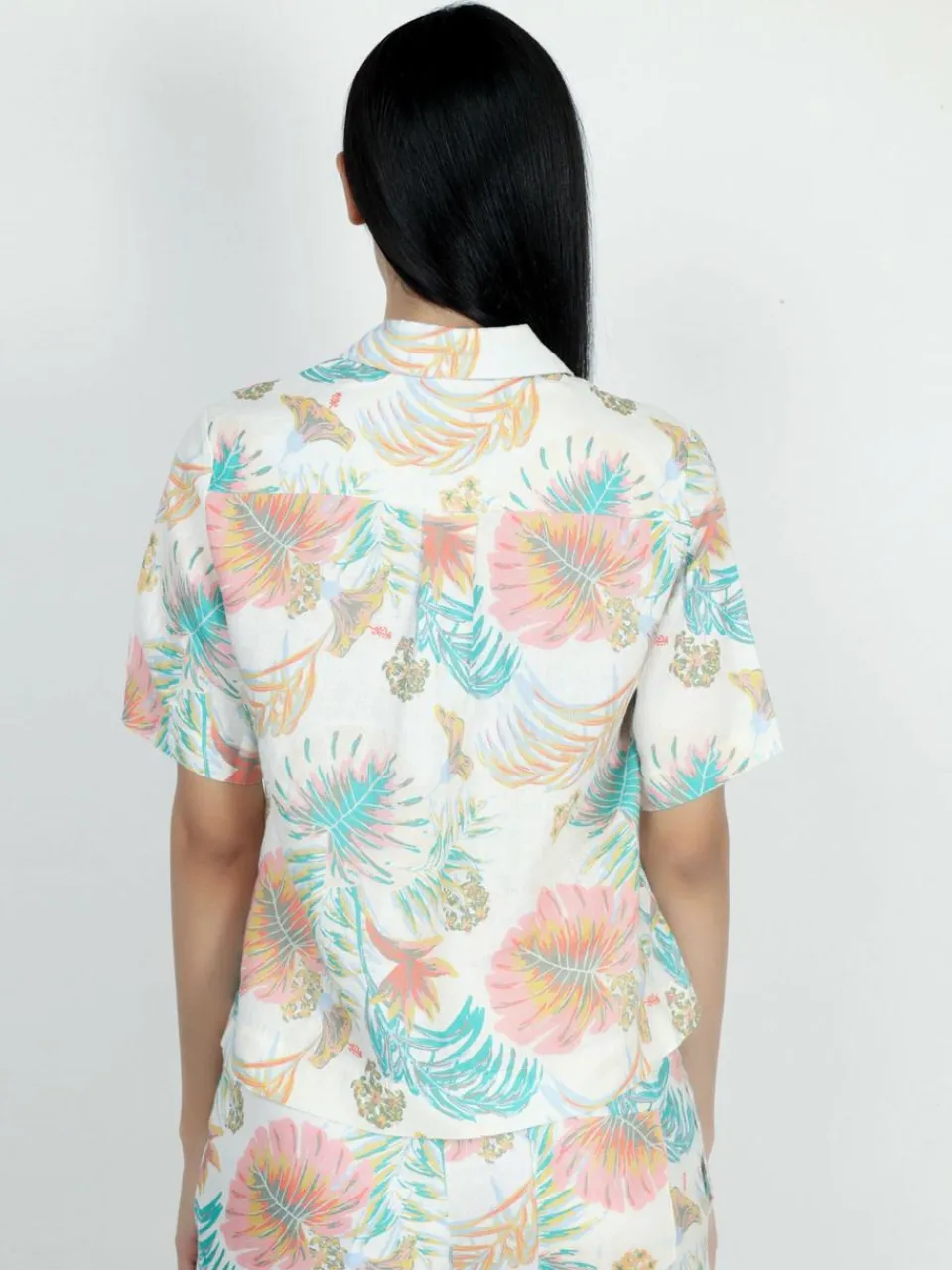 - Lässige Sommerbluse aus Leinen mit Palmendruck