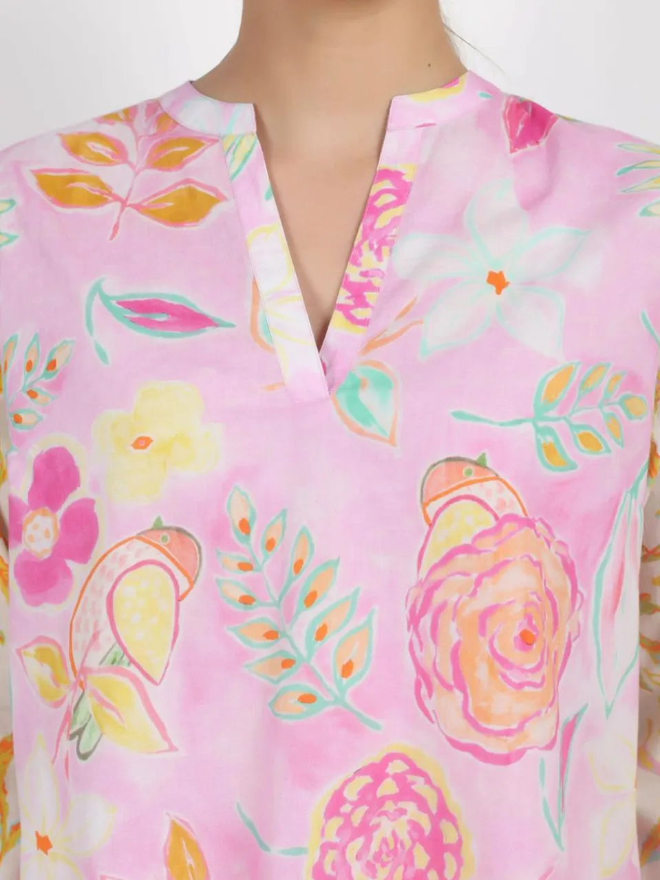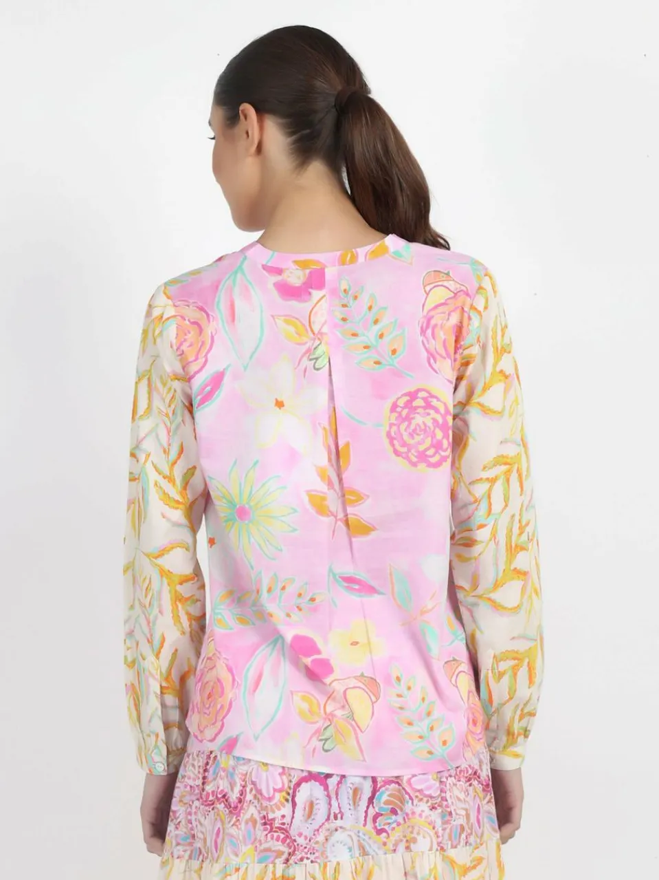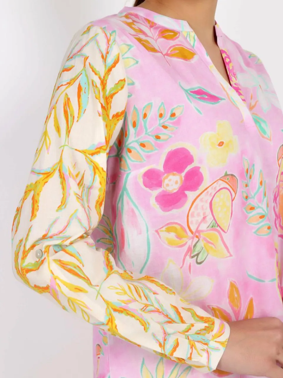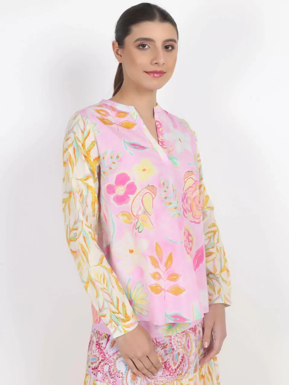 Eine vielseitige Bluse, dass im Handumdrehen sowohl schick als auch lässig gestylt werden kann! Mit V-Ausschnitt und 3/4-Ärmel, es ist aus leichtem Baumwolle gefertigt und bietet maximalen Komfort an heißen Tagen. Die 2 verschiedenen Drucke auf der Bluse machen es einzigartiger und aufregender. Gesamtlänge: 64 cm, Rückenbreite: 38 cm, Brustweite: 102 cm.
