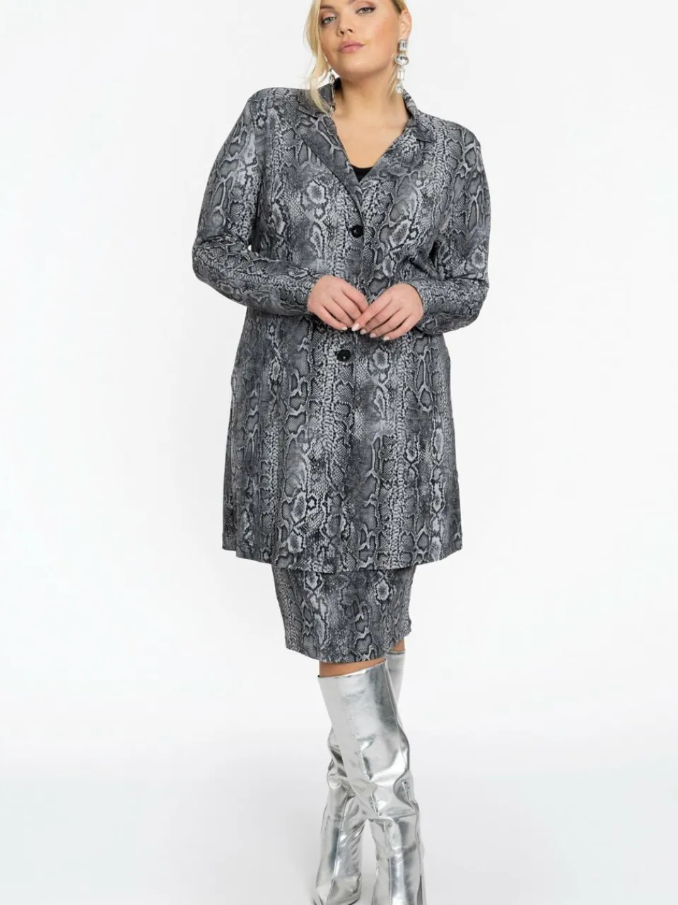 Mit seinen schlanken Linien schmeichelt dieser Blazer Ihrer Silhouette und bietet gleichzeitig Vielseitigkeit für lässige und formelle Looks. Mit seinem auffälligen Schlangenmuster ist dieser Blazer so gestaltet, dass Sie auffallen!