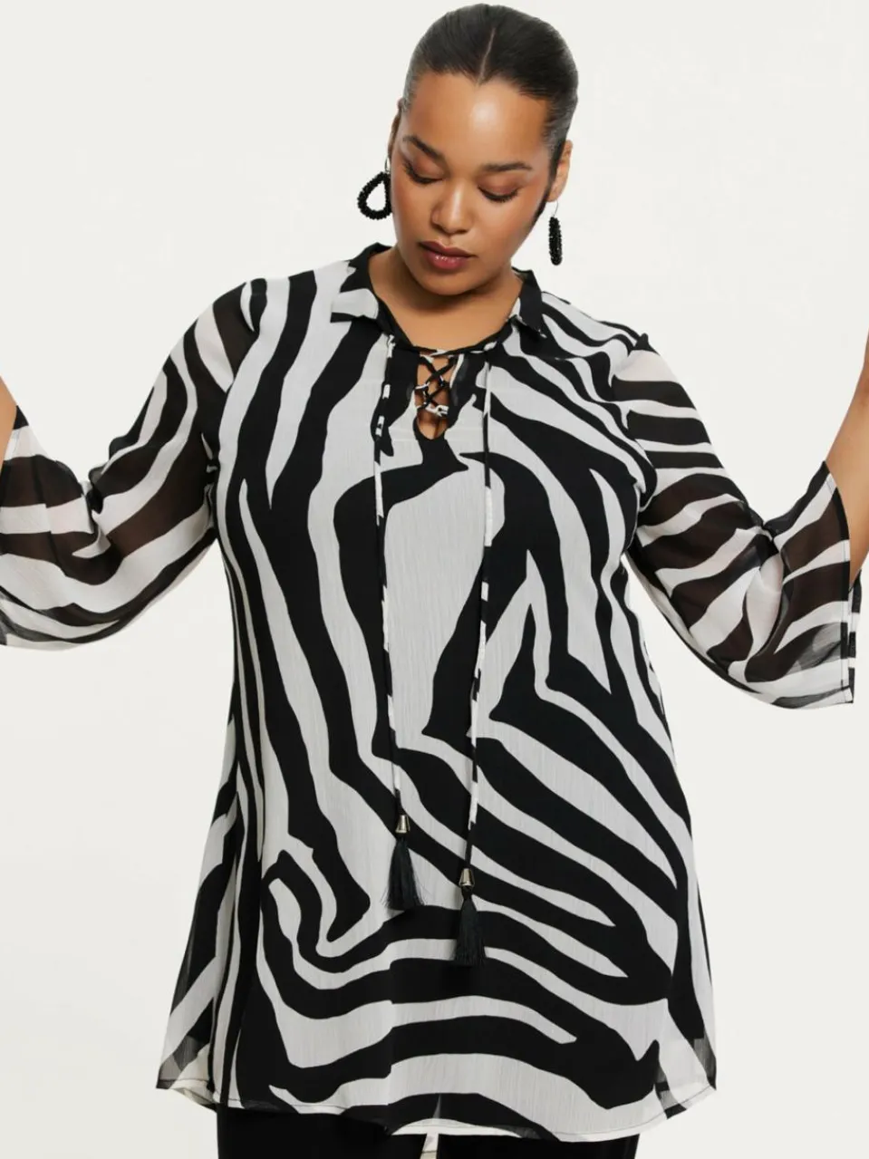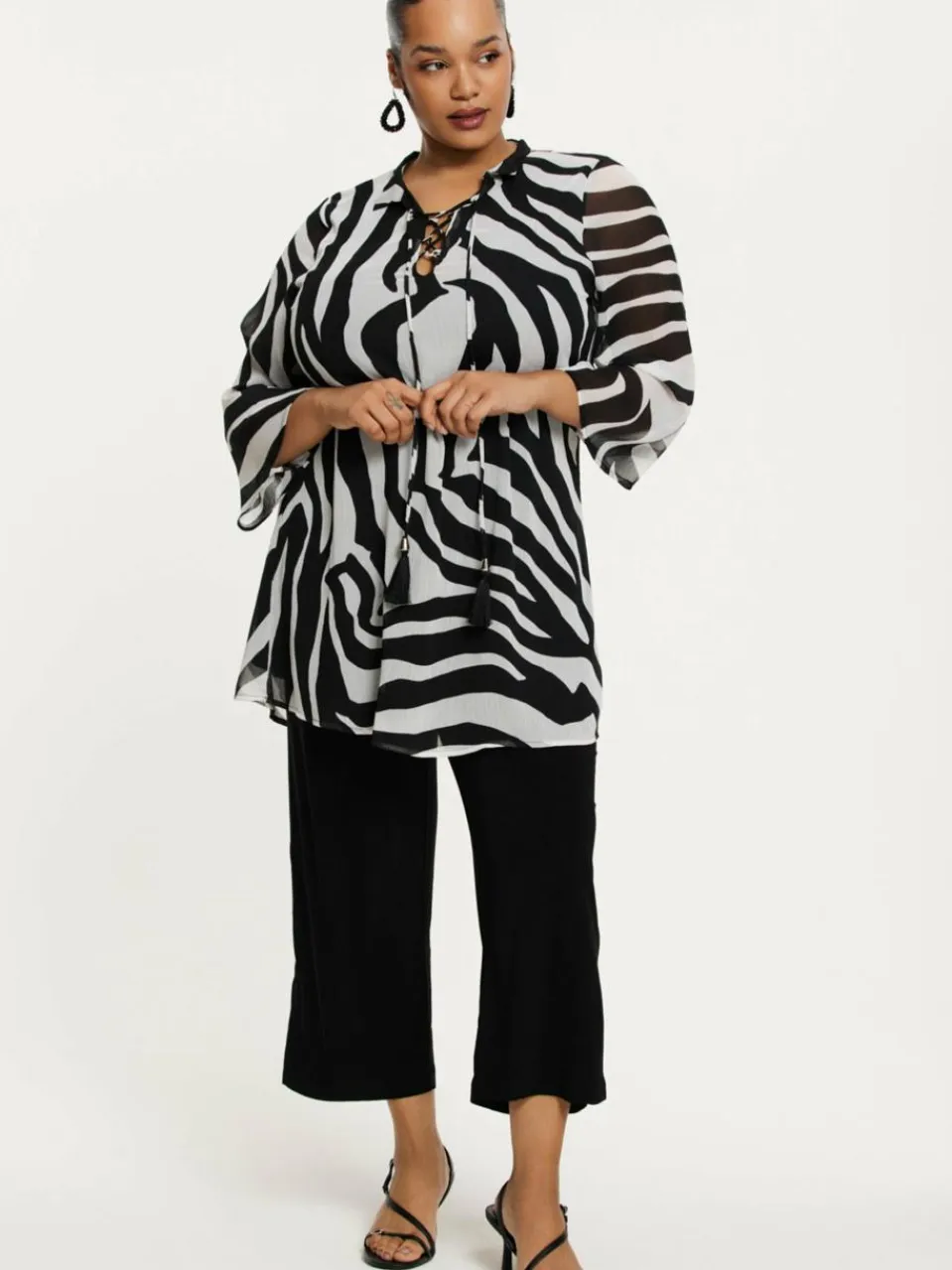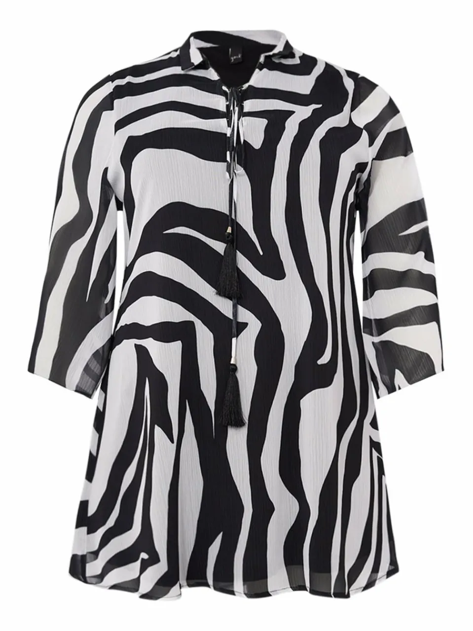 YOEK Blusen<Damen Tunika schwarz bedruckt