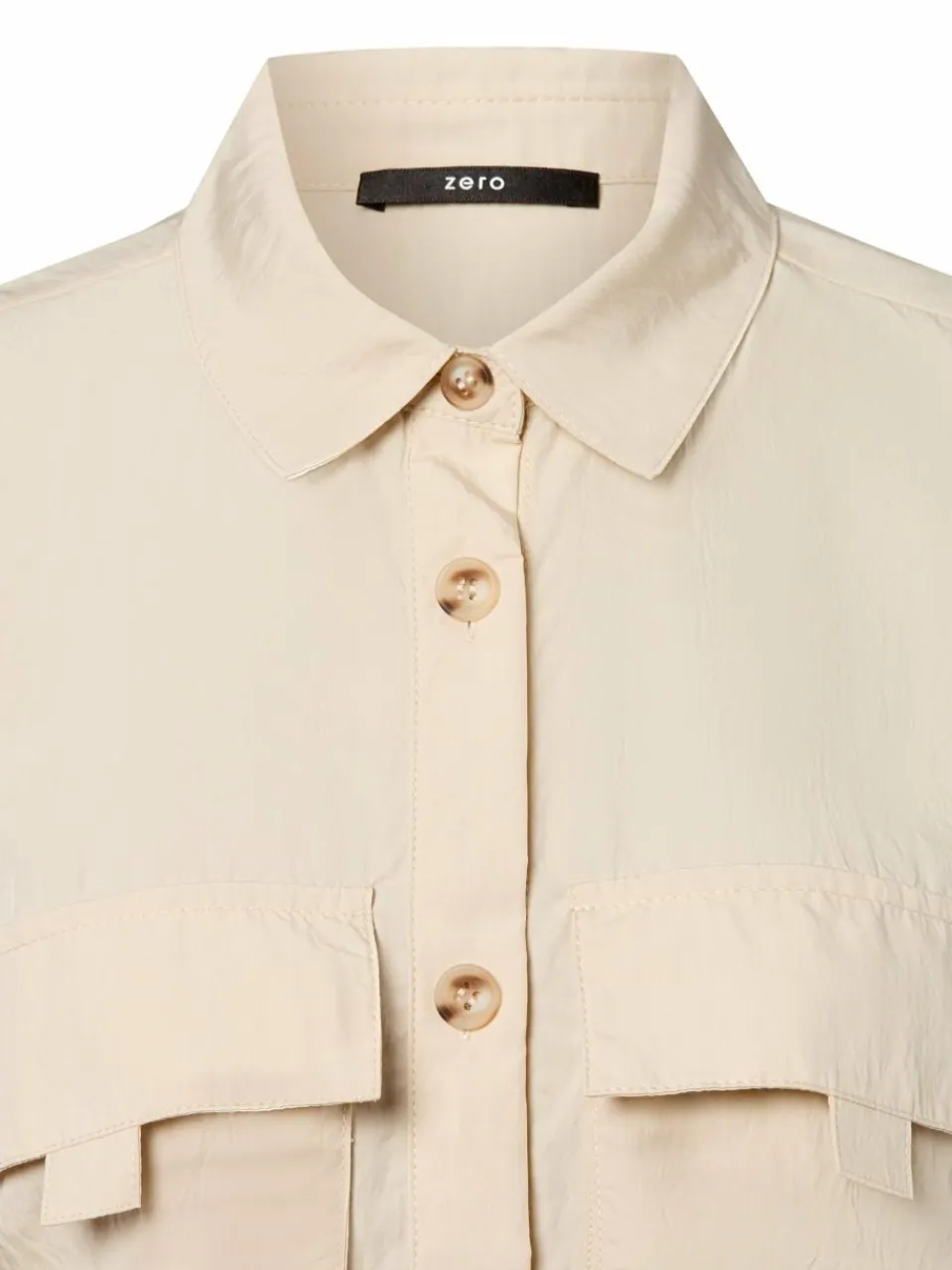Das Blusentop von zero aus leichtem Viskose-Mix kombiniert eleganten Stil mit modernen, aufgesetzten Taschen im Cargo-Stil – ideal für vielseitige Looks.